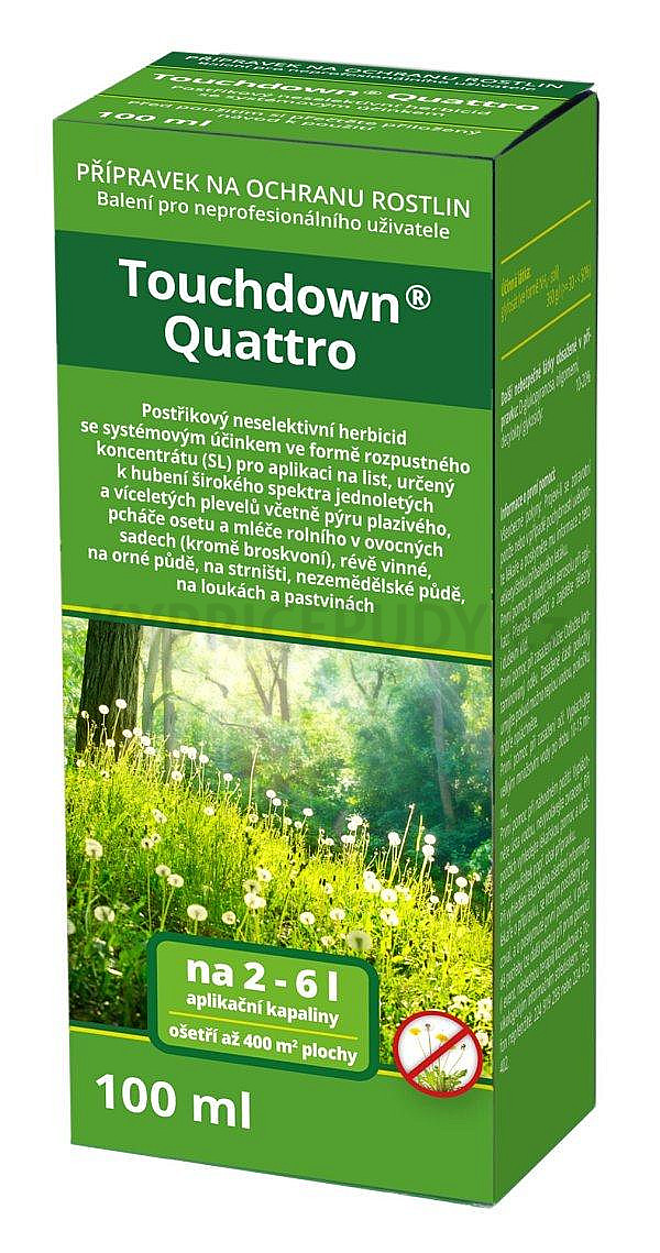 Touchdown Quattro obsahuje účinnou látku glyphosate, která je přijímaná listy. Přípravek působí neselektivně jako listový systematický herbicid proti širokému spektru jednoletých a víceletých plevelů včetně pýru plazivého, pcháče osetu a mléče rolního před setím nebo na strniště. Používá se v ovocných sadech, vinicích na orné i nezemědělské půdě.